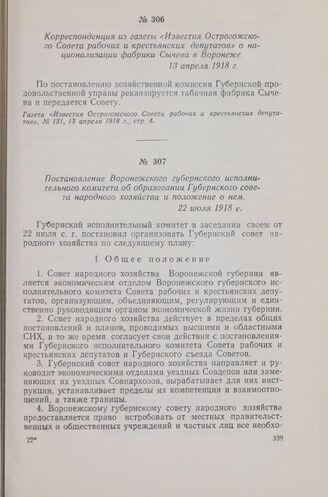 Корреспонденция из газеты «Известия Острогожского Совета рабочих и крестьянских депутатов» о национализации фабрики Сычева в Воронеже. 13 апреля 1918 г.
