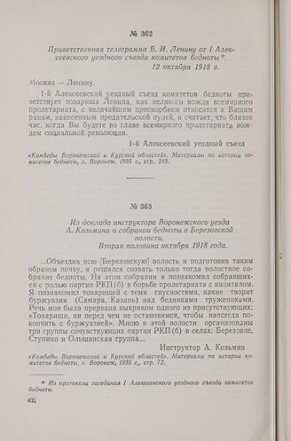 Из доклада инструктора Воронежского уезда А. Козьмина о собрании бедноты в Березовской волости. Вторая половина октября 1918 года