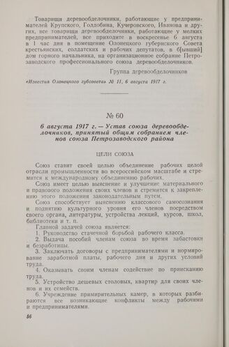 6 августа 1917 г. — Устав союза деревообделочников, принятый общим собранием членов союза Петрозаводского района