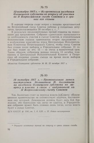 18 октября 1917 г. — Протокольная запись выступления большевика П. Аксентьева на заседании Олонецкого губсовета по вопросу о власти в связи с подготовкой ко II Всероссийскому съезду Советов