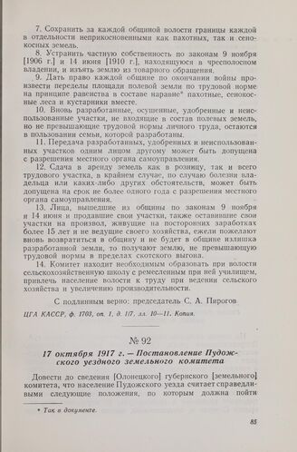 17 октября 1917 г. — Постановление Пудожского уездного земельного к...
