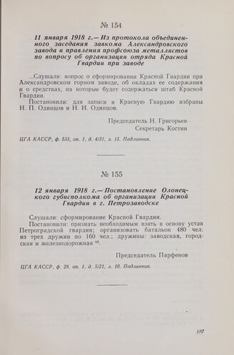 12 января 1918 г. — Постановление Олонецкого губисполкома об организации Красной Гвардии в г. Петрозаводске