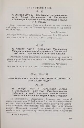 13 января 1918 г. — Сообщение Олонецкого Совета солдатских депутато...