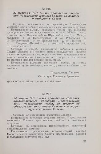27 февраля 1918 г. — Из протокола заседания Повенецкого уездного Совета по вопросу о выборах в Совет