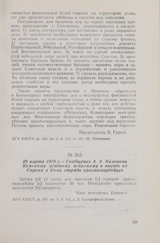 28 марта 1918 г. — Сообщение А. А. Каменева Кемскому уездному исполкому о выезде из Сороки в Кемь отряда красногвардейцев