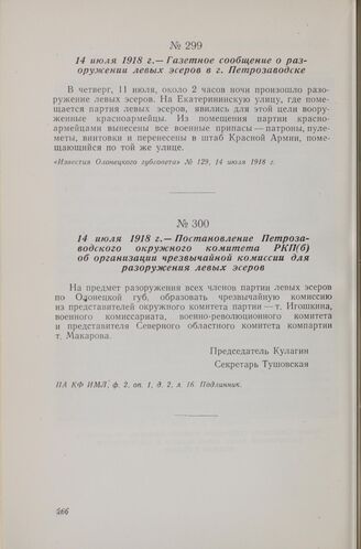 14 июля 1918 г. — Газетное сообщение о разоружении левых эсеров в г. Петрозаводске