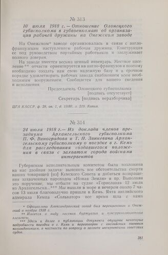 10 июля 1918 г. — Отношение Олонецкого губисполкома в губвоенкомат об организации рабочей дружины на Онежском заводе