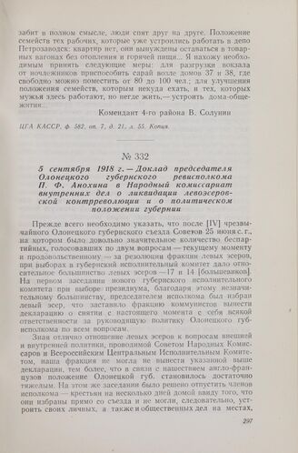 5 сентября 1918 г. — Доклад председателя Олонецкого губернского ревисполкома П. Ф. Анохина в Народный комиссариат внутренних дел о ликвидации левоэсеровской контрреволюции и о политическом положении губернии