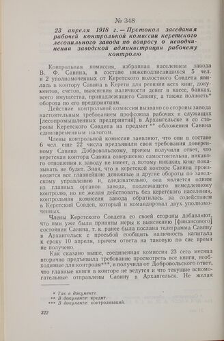 23 апреля 1918 г. — Протокол заседания рабочей контрольной комиссии керетского лесопильного завода по вопросу о неподчинении заводской администрации рабочему контролю