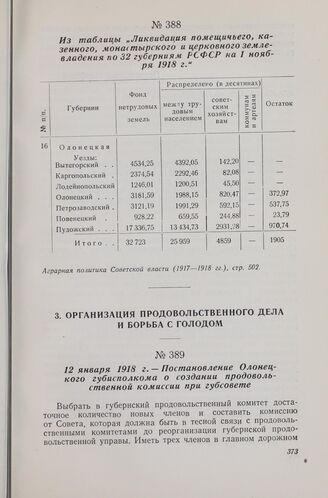 Из таблицы «Ликвидация помещичьего, казенного, монастырского и церковного землевладения по 32 губерниям РСФСР на 1 ноября 1918 г.» // Аграрная политика Советской власти (1917—1918 гг.), стр. 502.