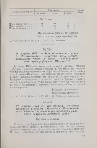 27 марта 1918 г. — Из письма солдата Кичигина в газету «Известия Петроградского Совета» о реквизиции товаров у кулаков в с. Нюхче, Кемского уезда // «Известия Петроградского Совета рабочих и солдатских депутатов» № 8, 27 марта 1918 г.