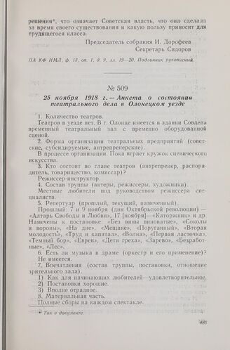 25 ноября 1918 г. — Анкета о состоянии театрального дела в Олонецко...
