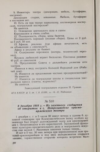 8 декабря 1918 г. — Из газетного сообщения об открытии в г. Петрозаводске красноармейского театра