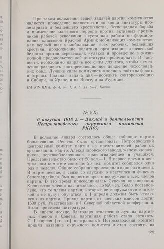 6 августа 1918 г. — I Олонецкая губернская конференция РКП(б). Доклад о деятельности Петрозаводского окружного комитета РКП(б) // ПА КФ ИМЛ, ф. 4, оп. 1, д. 5, лл. 8—10. Копия.