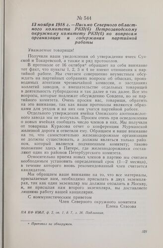 13 ноября 1918 г. — Письмо Северного областного комитета РКП(б) Петрозаводскому окружному комитету РКП(б) по вопросам организации и содержания партийной работы