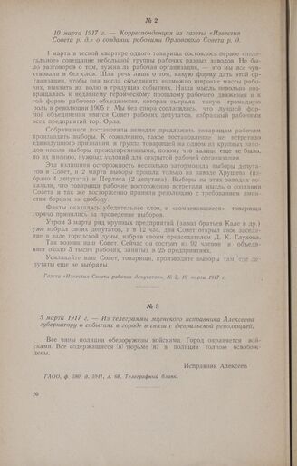 10 марта 1917 г. - Корреспонденция из газеты «Известия Совета р. д.» о создании рабочими Орловского Совета р. д. // Газета «Известия Совета рабочих депутатов», № 2, 10 марта 1917 г.