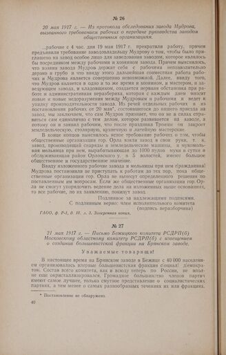 21 мая 1917 г. - Письмо Бежицкого комитета РСДРП(б) Московскому областному комитету РСДРП(б) с извещением о создании большевистской фракции на Брянском заводе