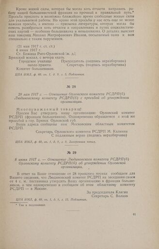 28 мая 1917 г. - Отношение Орловского комитета РСДРП(б) Людиновском...