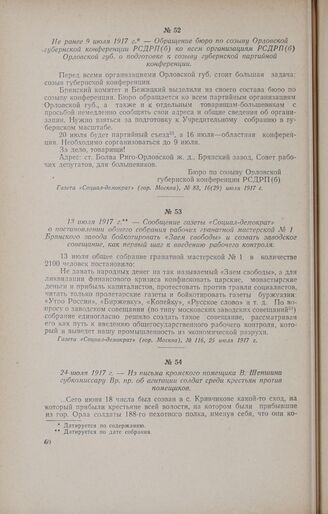 13 июля 1917 г. - Сообщение газеты «Социал-демократ» о постановлении общего собрания рабочих гранатной мастерской № 1 Брянского завода бойкотировать «Заем свободы» и созвать заводское совещание, как первый шаг к введению рабочего контроля