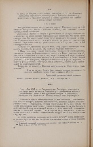 Не ранее 29 августа - не позднее 1 сентября 1917 г. - Воззвание Бежицкого временного революционного комитета Брянского у. к населению с призывом вступать в боевые дружины для борьбы с корниловским мятежом