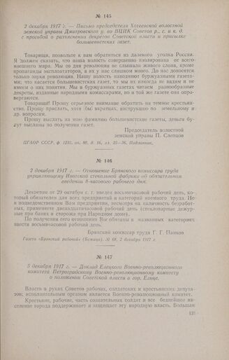 5 декабря 1917 г. - Доклад Елецкого Военно-революционного комитета Петроградскому Военно-революционному комитету о положении Советской власти в гор. Ельце