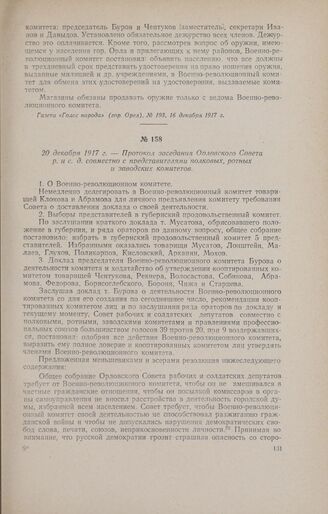 20 декабря 1917 г. - Протокол заседания Орловского Совета р. и с. д...
