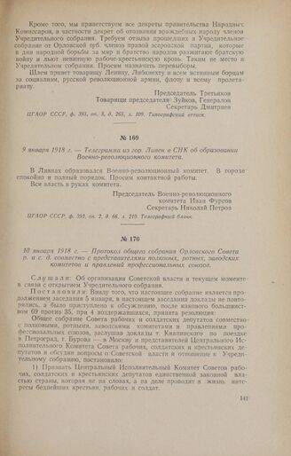 9 января 1918 г. - Телеграмма из гор. Ливен в СНК об образовании Военно-революционного комитета