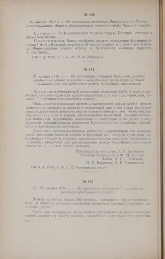 25 января 1918 г. - Из протокола заседания Новосильского Военно-революционного бюро о формировании первого отряда Красной гвардии // ГАОО, ф. Р-662, д. 2, лл. 29-29 об. Подлинник.