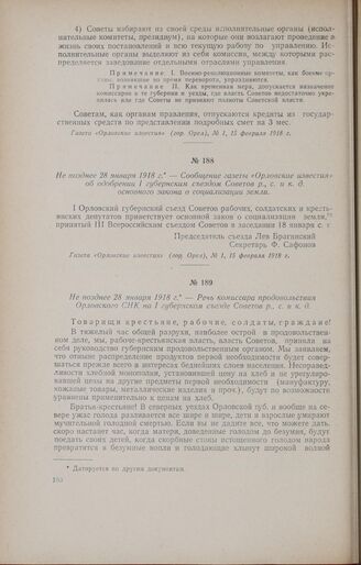 Не позднее 28 января 1918 г. - Сообщение газеты «Орловские известия» об одобрении I губернским съездом Советов р., с. и к. д. основного закона о социализации земли