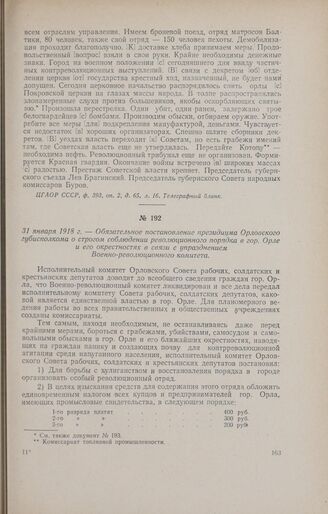 31 января 1918 г. - Обязательное постановление президиума Орловского губисполкома о строгом соблюдении революционного порядка в гор. Орле и его окрестностях в связи с упразднением Военно-революционного комитета // Газета «Орловские известия» (гор. Орел), № 1, 15 февраля 1918 г.