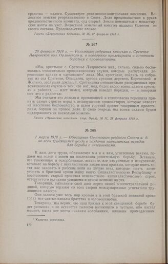 1 марта 1918 г. - Обращение Орловского уездного Совета к. д. ко всем трудящимся уезда о создании партизанских отрядов для борьбы с интервентами