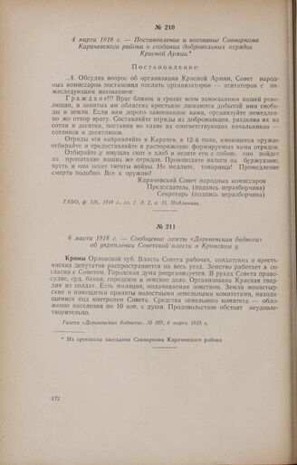 4 марта 1918 г. - Постановление и воззвание Совнаркома Карачевского района о создании добровольных отрядов Красной Армии
