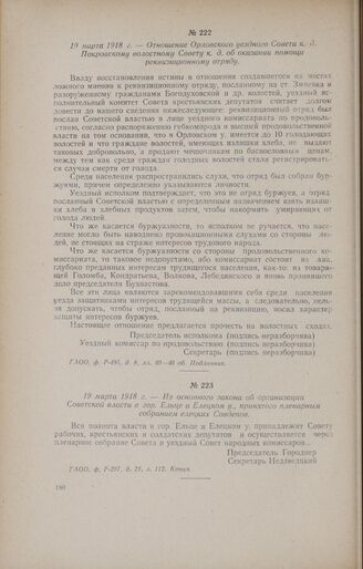19 марта 1918 г. - Из основного закона об организации Советской власти в гор. Ельце и Елецком у., принятого пленарным собранием елецких Совдепов // ГАОО, ф. Р-297, д. 21, л. 112. Копия.