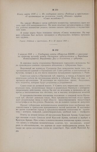 2 апреля 1918 г. - Сообщение газеты «Известия ВЦИК» о разговоре по прямому проводу между Орловским губисполкомом и Народным Комиссариатом Внутренних Дел о положении в губернии
