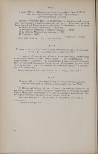10 июля 1918 г. - Сообщение газеты «Известия ВЦИК» об открытии в гор. Орле III губернского съезда Советов