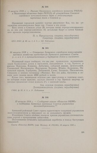 12 августа 1918 г. - Сообщение газеты «Известия ВЦИК» о поддержке Брянским районным Советом украинских железнодорожников // Газета «Известия ВЦИК» (гор. Москва), № 172(436), 18 августа 1918 г.