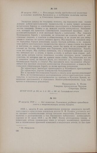18 августа 1918 г. - Акт комиссии Ливенского уездного врачебного совета о национализации аптеки Крафта