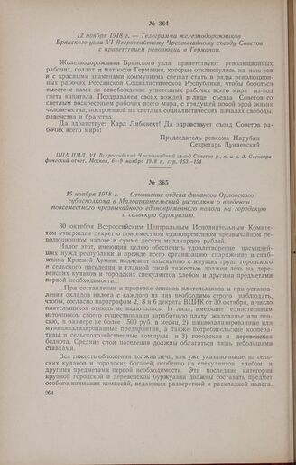 12 ноября 1918 г. - Телеграмма железнодорожников Брянского узла VI Всероссийскому Чрезвычайному съезду Советов с приветствием революции в Германии