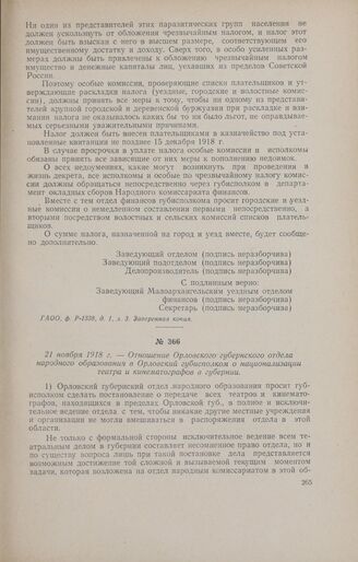 21 ноября 1918 г. - Отношение Орловского губернского отдела народного образования в Орловский губисполком о национализации театра и кинематографов в губернии