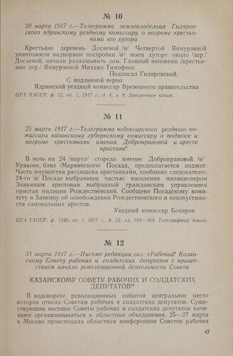 31 марта 1917 г. — Письмо редакции газ. «Рабочий» Казанскому Совету рабочих и солдатских депутатов с приветствием начала революционной деятельности Совета // Газ. «Рабочий» № 1, 31 марта 1917 г.