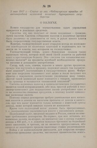 5 мая 1917 г. — Статья из газ. «Чебоксарская правда» об антинародной налоговой политике буржуазного государства