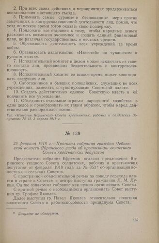 25 февраля 1918 г. — Протокол собрания граждан Чебаевской волости Ядринского уезда об организации волостного Совета крестьянских депутатов