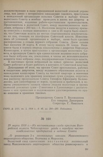 29 марта 1918 г. — Из постановления схода крестьян Богородской воло...