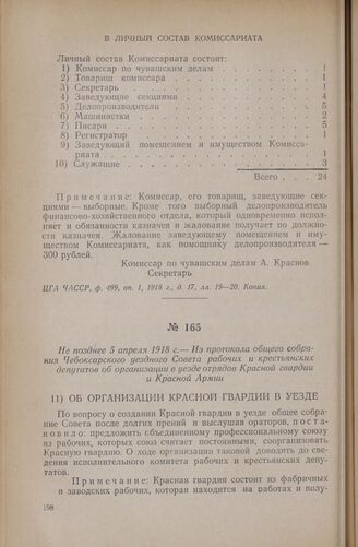 Не позднее 5 апреля 1918 г. — Из протокола общего собрания Чебоксарского уездного Совета рабочих и крестьянских депутатов об организации в уезде отрядов Красной гвардии и Красной Армии // ЦГА ЧАССР, ф. 111, оп. 1, 1918 г., д. 21, л. 221. Копия.