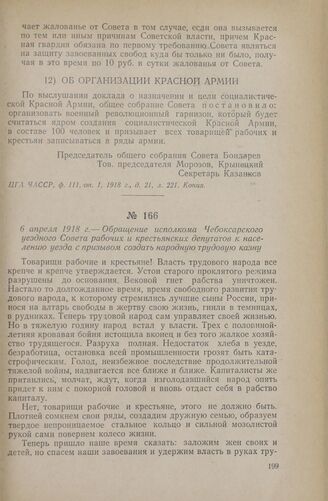 6 апреля 1918 г. — Обращение исполкома Чебоксарского уездного Совета рабочих и крестьянских депутатов к населению уезда с призывом создать народную трудовую казну