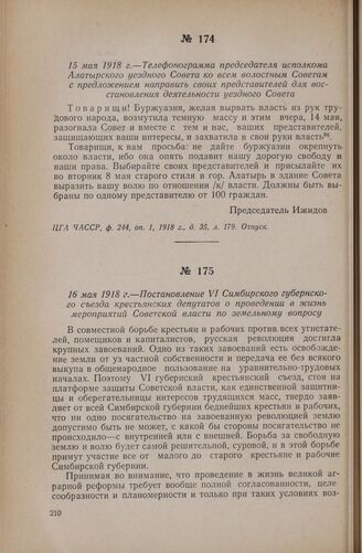 16 мая 1918 г. — Постановление VI Симбирского губернского съезда крестьянских депутатов о проведении в жизнь мероприятий Советской власти по земельному вопросу
