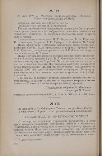 26 мая 1918 г. — Обращение Тетюшского уездного Совета к населению о борьбе с контрреволюционной провокацией