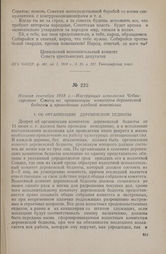 Начало сентября 1918 г. — Инструкция исполкома Чебоксарского Совета по организации комитетов деревенской бедноты и проведению хлебной монополии