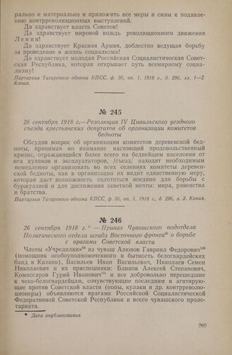 26 сентября 1918 г. — Резолюция IV Цивильского уездного съезда крестьянских депутатов об организации комитетов бедноты