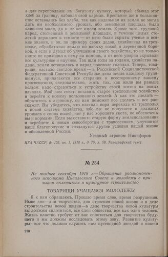 Не позднее сентября 1918 г. — Обращение уполномоченного исполкома Ц...